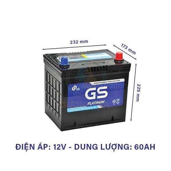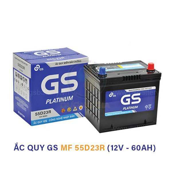 Ắc quy GS 55D23R 12V 60Ah – Ắc quy khô miễn bảo dưỡng chính hãng cho ô tô