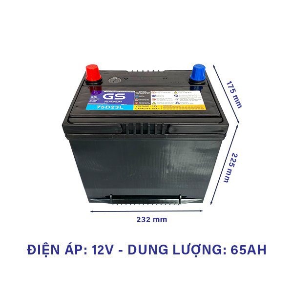 Với dung lượng 65Ah, bình đáp ứng tốt nhu cầu khởi động mạnh và cấp điện ổn định cho các hệ thống trên xe như đèn, điều hòa, giải trí. Thiết kế cọc trái giúp lắp đặt tương thích với nhiều mẫu xe Nhật – Hàn. Đây là lựa chọn phổ biến trong phân khúc bình ắc quy GS 75D23L nhờ độ bền cao và chi phí hợp lý.