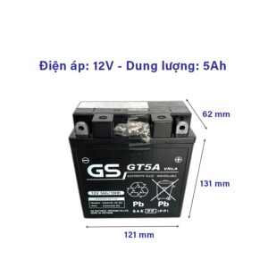 Ắc quy GS GT5A là dòng ắc quy xe máy GS 12V 5Ah do GS Battery sản xuất tại Việt Nam theo công nghệ Nhật Bản. Sản phẩm thuộc nhóm ắc quy khô miễn bảo dưỡng, không cần châm nước trong suốt quá trình sử dụng.