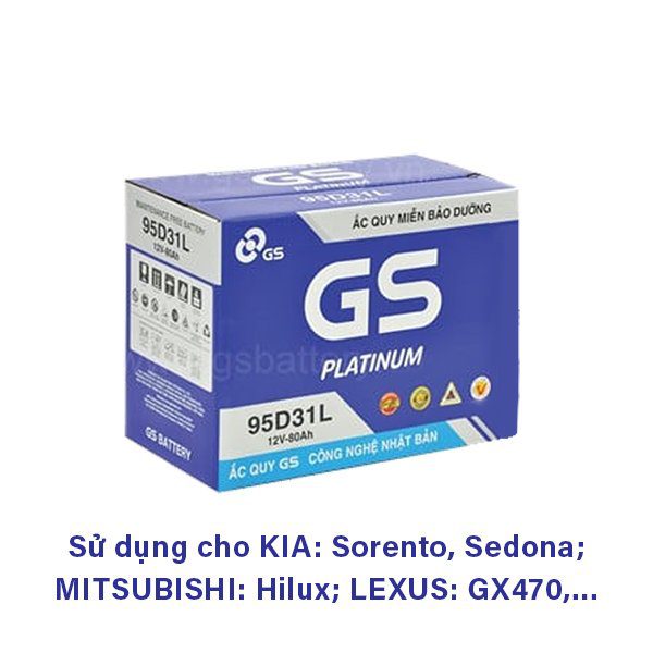 Ắc quy GS MF 95D31L 12V 80Ah cọc trái được sử dụng cho các dòng xe: