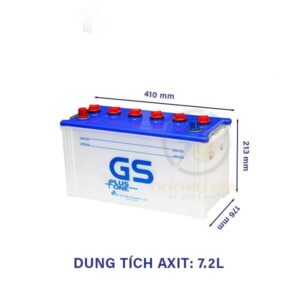 Bình có thể tích axit 7.2 lít, bản cực dày, giúp tăng khả năng tích điện và chịu tải tốt khi vận hành liên tục. Thiết kế kích thước 410 x 176 x 213 mm tiêu chuẩn, dễ lắp đặt và thay thế cho các dòng xe tải phổ biến. Ắc quy GS N100 12V 100Ah được tin dùng nhờ độ bền cao, dễ bảo dưỡng và phù hợp điều kiện làm việc khắc nghiệt.