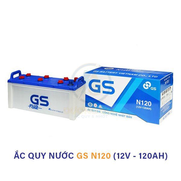 Ắc quy GS N120 là dòng ắc quy nước GS 12V 120Ah được sản xuất tại Việt Nam theo công nghệ Nhật Bản của GS Battery. Sản phẩm sử dụng cấu trúc chì–axit truyền thống, cho phép kiểm tra và châm bù dung dịch khi cần, phù hợp điều kiện vận hành nặng.