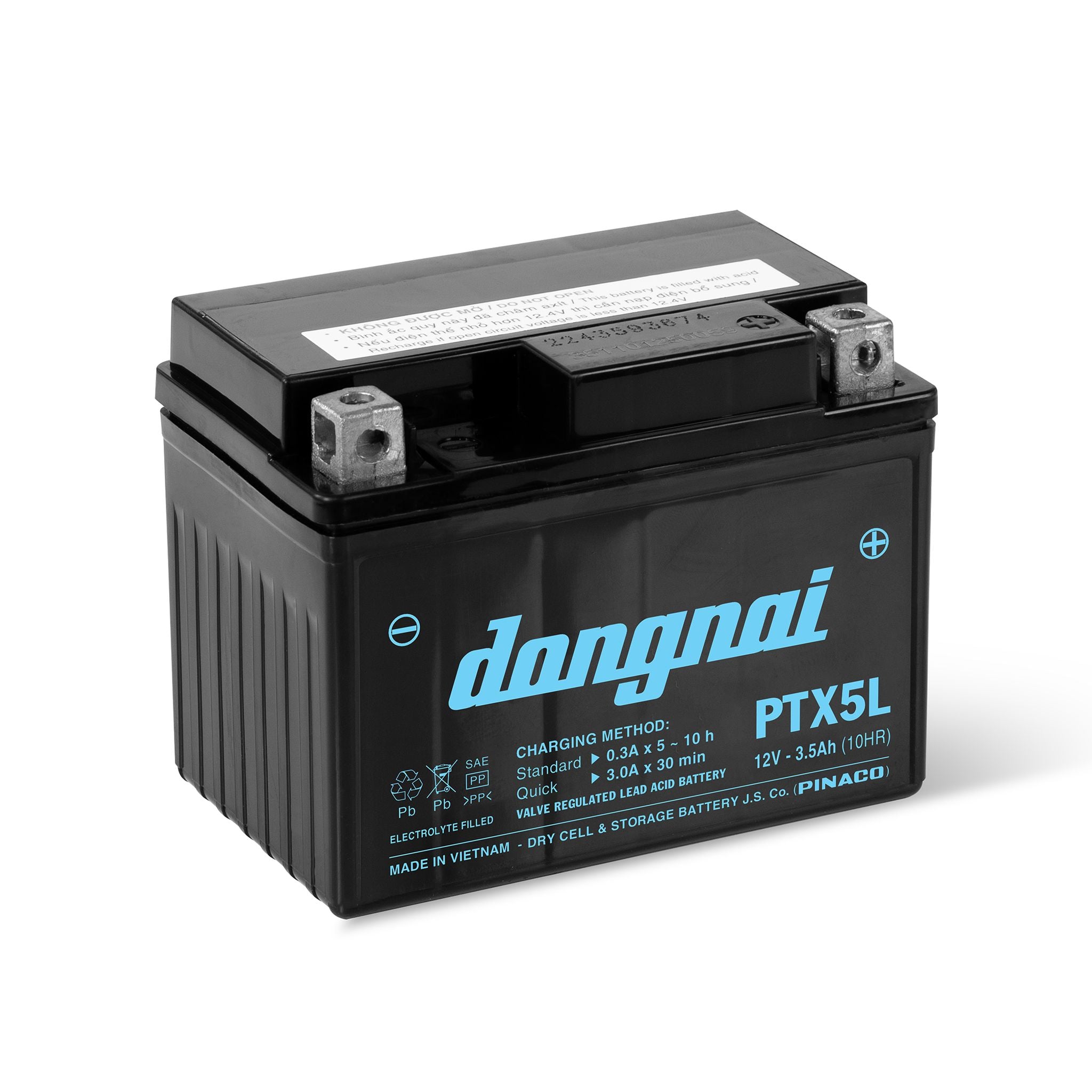 Ắc quy khô Đồng Nai PTX5L là dòng ắc quy khô Đồng Nai 3.5Ah do PINACO sản xuất tại Việt Nam, ứng dụng công nghệ VRLA (Valve Regulated Lead Acid) kín khí hiện đại, giúp bình miễn bảo dưỡng hoàn toàn, không cần châm nước trong suốt quá trình sử dụng.