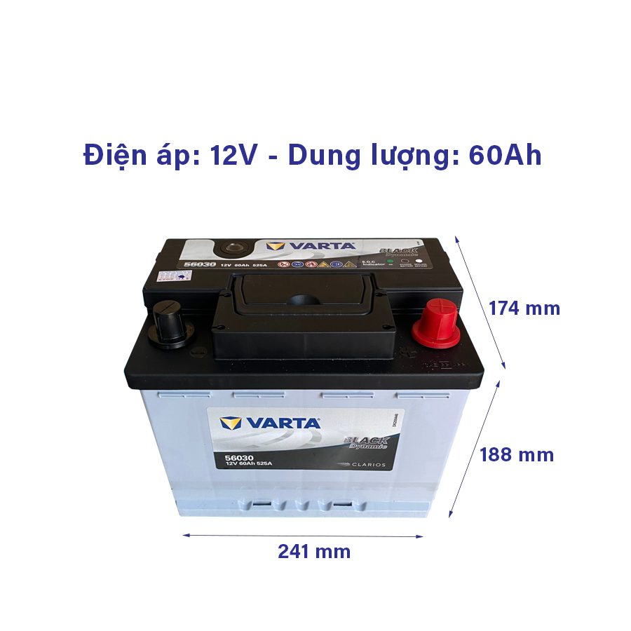 Ắc quy Varta DIN60 56030 12V 60Ah phù hợp cho các dòng xe phổ thông và gia đình: