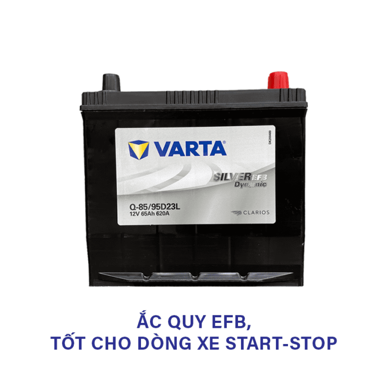 Trong đó, ắc quy Varta Q85 / 95D23L 12V 65Ah được thiết kế chuyên biệt cho các dòng xe sử dụng Start-Stop / i-Stop, nơi yêu cầu ắc quy có khả năng chịu sạc-xả liên tục và dòng phóng lớn. Với CCA đạt 620A, bình giúp xe đề nổ nhanh, vận hành mượt và đảm bảo ổn định hệ thống điện khi xe thường xuyên tắt-nổ động cơ trong đô thị.