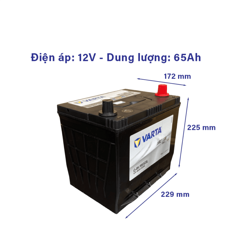 Kích thước chuẩn 229 x 172 x 225 mm, cọc trái, giúp lắp đặt đúng chuẩn theo xe Mazda. Ắc quy Varta Q85 / 95D23L là lựa chọn tối ưu cho người dùng cần ắc quy đúng chuẩn hãng – bền bỉ – ổn định lâu dài.